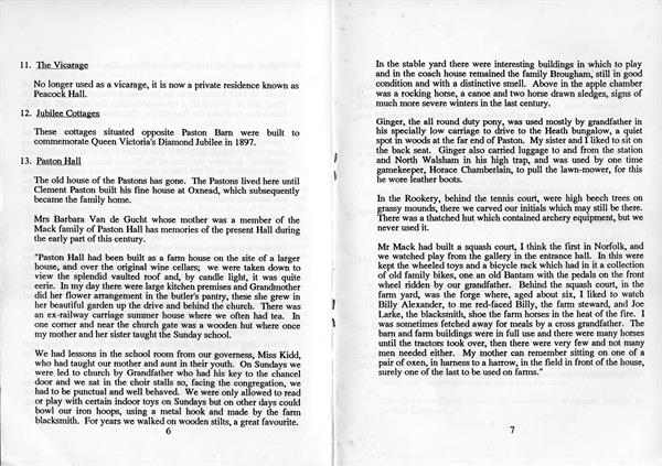 Mrs Barbara Van de Gucht whose mother was a member of the Mack family of Paston Hall has memories of the present Hall during the early part of this century.
